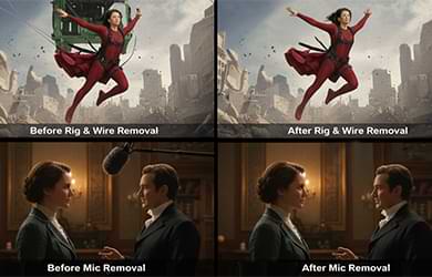 We provide advanced VFX Paint services to remove unwanted elements, clean plates, wire rigs, reflections, and on-set artifacts while preserving original image quality. Our artists ensure invisible fixes that maintain continuity and realism, supporting both complex sequences and subtle enhancements.