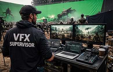 Our on-set VFX supervision ensures accurate capture of visual elements during production. We work closely with directors and crews to manage camera data, lighting references, and screen setups for seamless post-production integration.